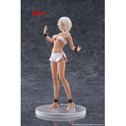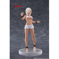 Côté design, la figurine joue sur les contrastes entre la peau mate de Marin et le blanc de sa tenue, réduite à un bandeau noué autour de la poitrine et une jupe très courte aux plis légers. Ses cheveux blonds coupés au carré encadrent son visage, une mèche couvrant partiellement un œil pour renforcer son expression malicieuse. Des menottes sombres entourent ses poignets et ses chevilles, reliées par de fines chaînes sculptées qui suivent naturellement la pose de son corps. Ses jambes sont légèrement écartées, le buste droit, une main levée et l’autre ouverte, ce qui donne une présence très dynamique tout en restant facile à exposer grâce à la base simple et stable.