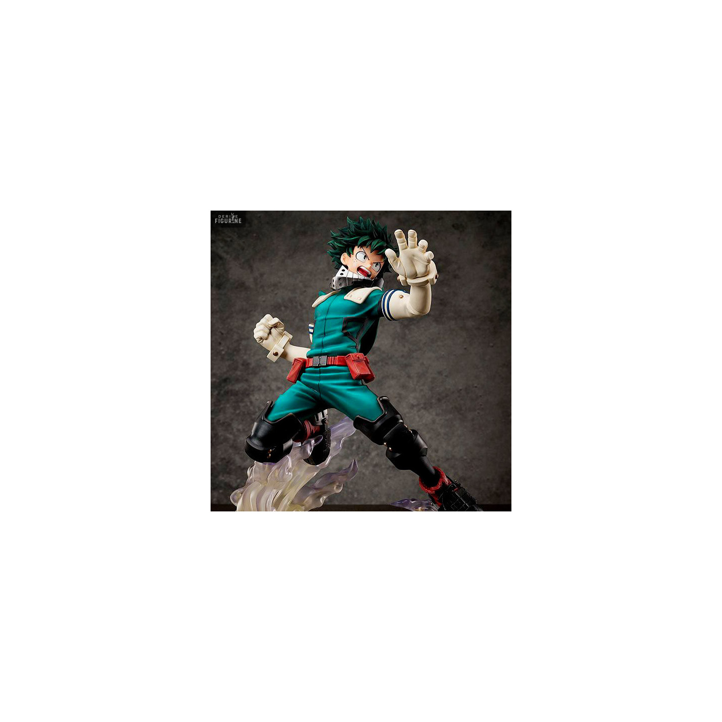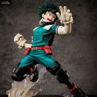 Cette figurine de l'anime et manga My Hero Academia représente le héros Izuku Midoriya dans réalisation à grand échelle et en plein action. Le super-héros né sans alter de MHA est ici sublimé avec un regard rempli de détermination et un socle avec effets.