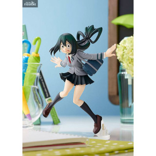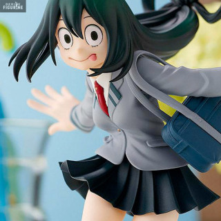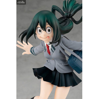 Figurine officielle de Tsuyu Asui en PVC d'environ 15 centimètres de haut. Elle est issue de la collection Pop Up Parade. Le fabricant est Takara Tomy.