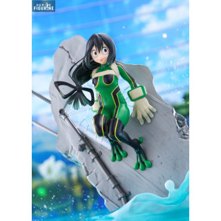 Figurine officielle de Tsuyu Asui en PVC mesurant environ 22 centimètres de haut. Elle est issue de la collection Dressta. Le fabricant est Taito.