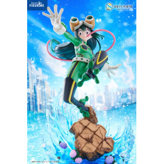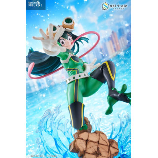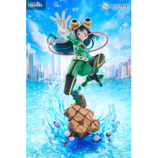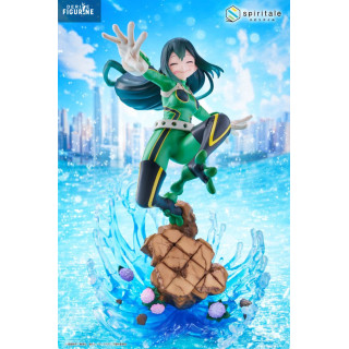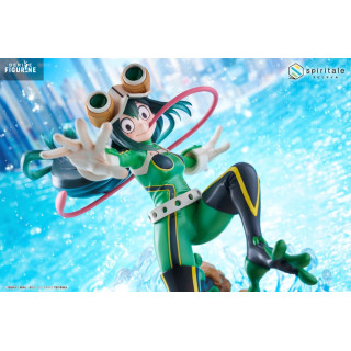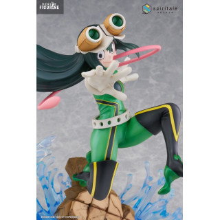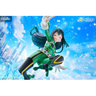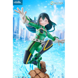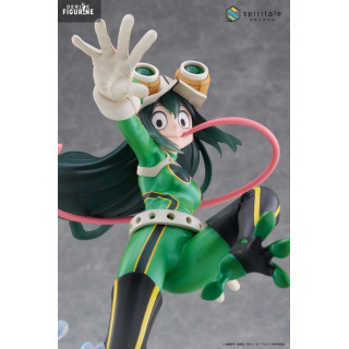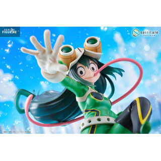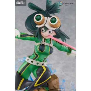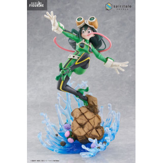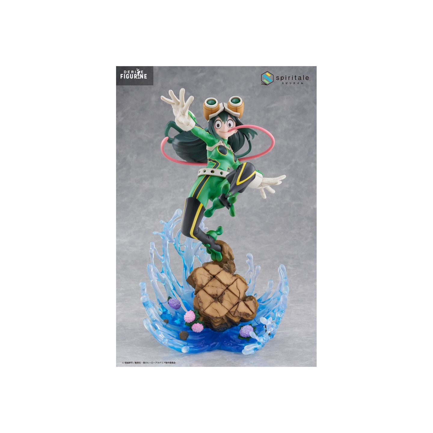 Figurine officielle de Tsuyu Asui, Frog en PVC mesurant environ 32 centimètres de haut, à l'échelle 1/7. Elle est issue de la collection Spiritale. Le fabricant est Taito.