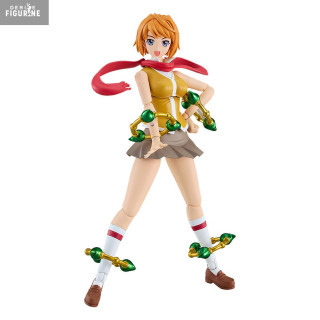 Cette figurine PLAMATEA reproduit fidèlement son design animé : coiffure courte rousse, écharpe rouge flottant au vent, tenue d’écolière revisitée et regard vif. Les bracelets et anneaux verts situés aux poignets et aux chevilles, symboles de ses pouvoirs, sont sculptés avec précision, tout comme les détails de sa jupe et de ses chaussures d’uniforme.