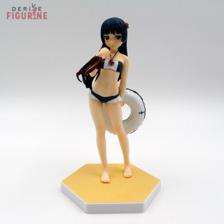Figurine d'occasion et officielle de Kuroneko en PVC d'environ 16 centimètres de haut à l'échelle 1/10. Kuroneko porte un maillot bleu et blanc, un collier et tient une bouée assortie. Possède une tête de rechange. Il s'agit d'un objet d'occasion en parfait état de la collection Beach Queens. Le fabricant est Wave Corporation, vendu avec boîte en assez bon état, mais le couvercle a pris l'eau.