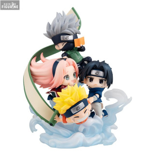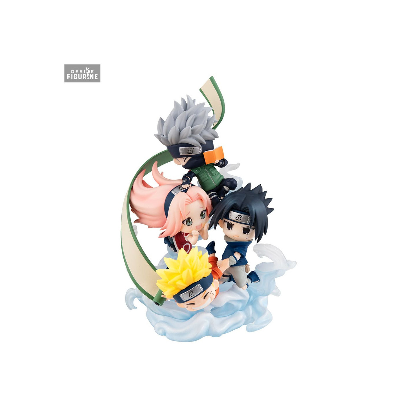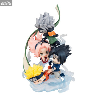 L’équipe 7, composée de Naruto Uzumaki, Sasuke Uchiha, Sakura Haruno et Kakashi Hatake, est l’un des groupes les plus emblématiques de l’univers Naruto. Dans cette version chibi, les personnages sont sculptés dans une scène pleine de mouvement, capturant l'énergie et la complicité qui les lient. Naruto et ses amis sont représentés dans une composition aérienne, semblant voler ensemble dans un tourbillon de feuilles et de chakra.