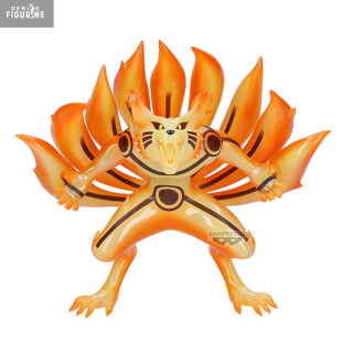 Kurama est une créature légendaire, un bijû ou démon à queues, qui fut scellé à l'intérieur de Naruto Uzumaki, le héros de la série. Dans cet état transformé, Kurama se manifeste avec une aura intense et des queues flamboyantes, symboles de son immense énergie. Sa puissance est redoutable, capable de provoquer des destructions massives. La figurine capture parfaitement son apparence menaçante, des crocs acérés aux lignes noires stylisées qui parcourent son corps, accentuant son aura mystique et terrifiante. Cette représentation de Kurama est un ajout essentiel pour les fans de Naruto, offrant une présence impressionnante et évocatrice de l'une des créatures les plus iconiques de l'univers ninja.