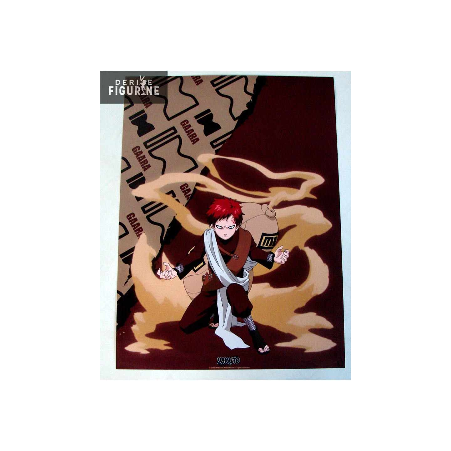 Gaara est le personnage présent sur ce poster. Il est accroupi et semblerait préparer une attaque. En effet, en voyant son regard sombre, la position de ses mains et le sable qui commence à s'écouler de sa jarre, tout laisse à penser qu'un combat se prépare.