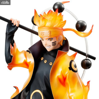 Figurine officielle de Naruto Uzumaki, Rikudo Sennin Mode 15th Anniversary en PVC mesurant environ 22 centimètres de haut. Elle est issue de la collection G.E.M. Series. Le fabricant est Megahouse.