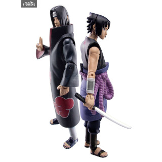 Figurines officielles de Sasuke et Itachi mesurant environ 10 centimètres de haut. Le fabricant est Toynami.