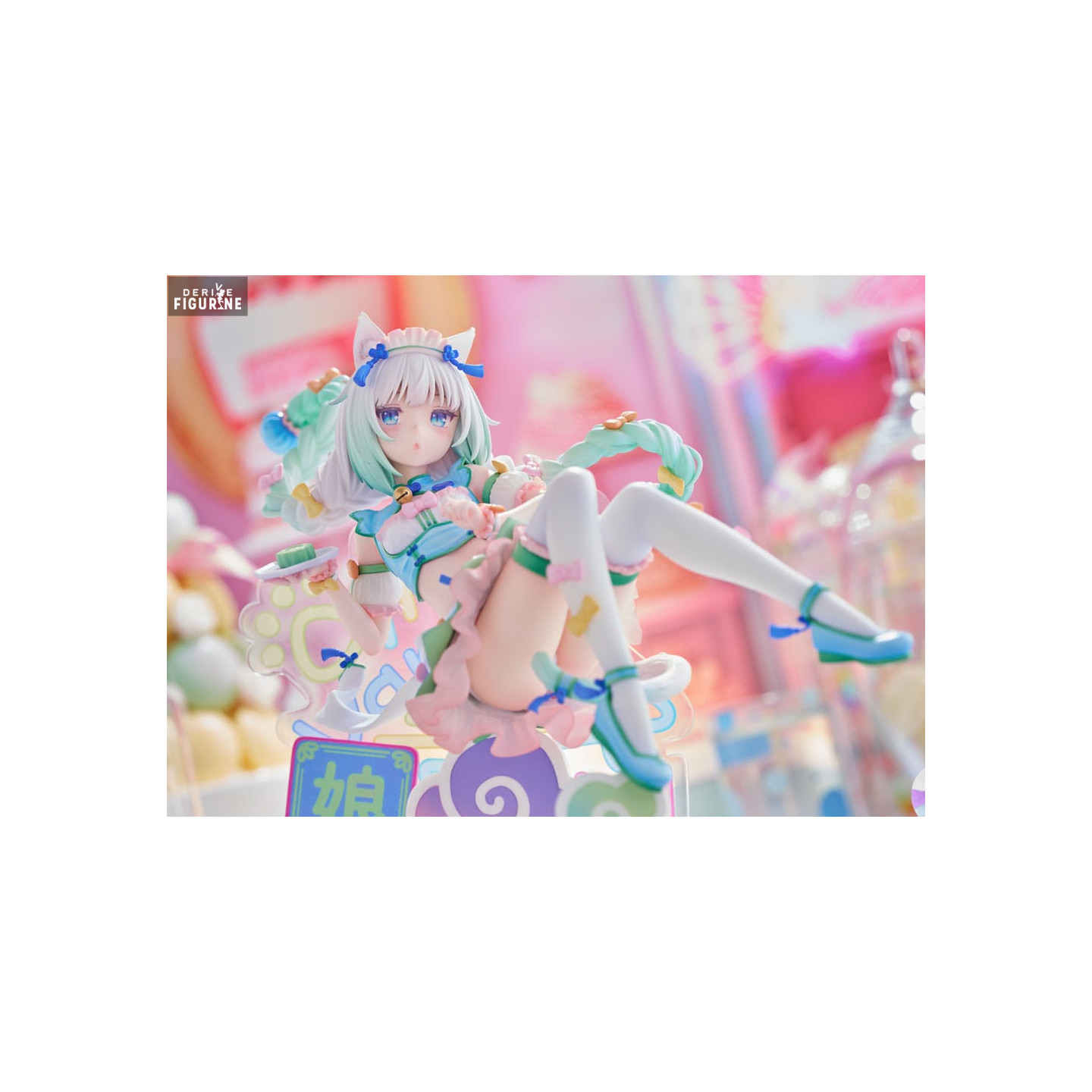 Plongez dans l’univers sucré et enchanteur de Nekopara avec cette magnifique figurine de Vanilla, représentée dans sa version Dreamy Cute China. Vanilla, avec sa personnalité calme et douce, est l’un des personnages les plus adorés de cette série. Sa chevelure argentée et ses yeux pétillants capturent parfaitement son élégance naturelle et sa proximité affectueuse avec sa sœur Chocola. Habillée d’un charmant costume d’inspiration chinoise pastel, Vanilla est ici sublimée dans une pose pleine de légèreté et de grâce, reflétant toute la magie de son caractère.