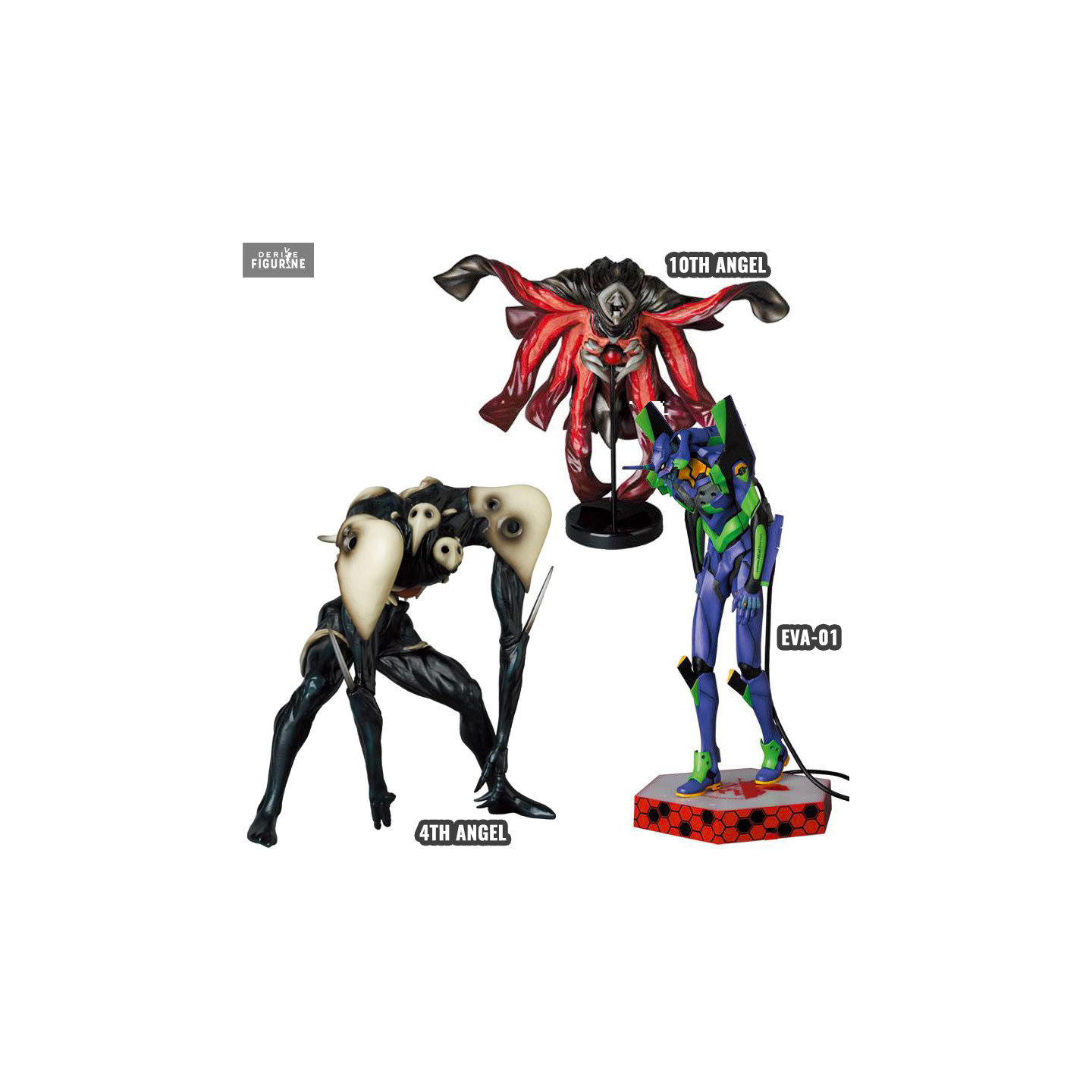 Ces belles figurines de l'univers Neon Genesis Evangelion vont ravir les fans de la licence, car deux d'entre elles sont peu représentées. Il y a donc l'EVA-01 qui est assez connu, mais aussi le 4th Angel aussi connu sous le nom de Sachiel ou le 10th Angel qui s'appelle quant à lui aussi Zeruel. C'est maintenant à vous de faire votre choix parmi ces trois figurines.