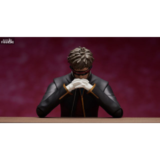 Gendo Ikari, le commandant austère et calculateur de NERV, est fidèlement reproduit avec ses traits distinctifs. Il porte son costume noir avec une chemise rouge, accompagné de ses célèbres lunettes de soleil. La posture droite et les détails minutieux de son visage capturent parfaitement l'essence de ce personnage emblématique.