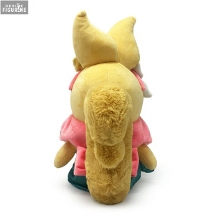 Conçue en polypropylène ultra-doux, cette peluche de 22 cm reproduit fidèlement chaque détail de son personnage : les longues oreilles tombantes, le bandeau rose orné d’une fleur blanche et la collerette duveteuse évoquent une brise marine. Sa posture assise, les mains posées sur les côtés, reflète l’équilibre entre stabilité et convivialité.