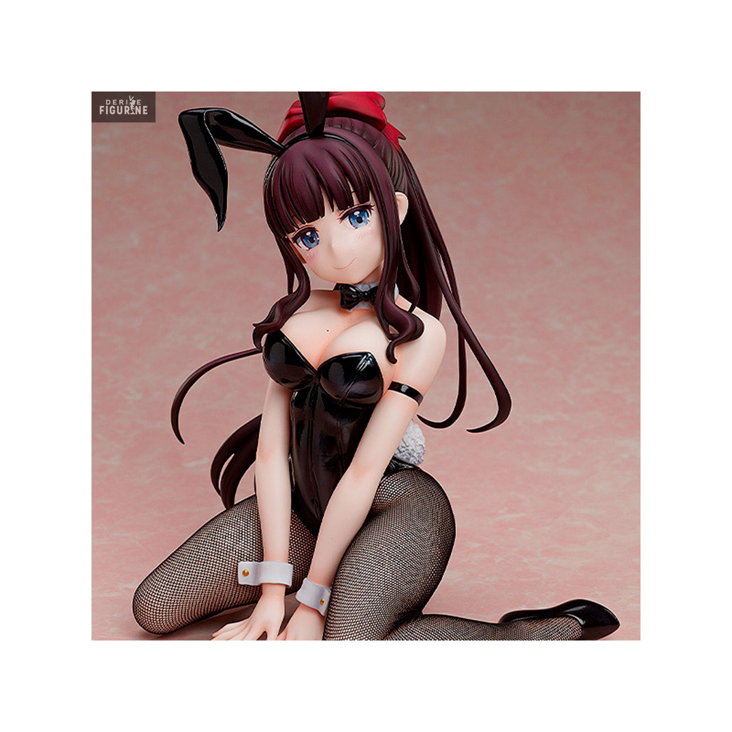 Hifumi Takimoto de la série New Game!! se présente dans une tenue sexy de Bunny vêtue de bas résille. Un serre-tête avec des oreilles et une queue de lapin viennent embellir sa tenue.