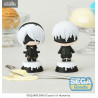 Figurines officielles de 2B et 9S en PVC mesurant environ 7 centimètres de haut. Le fabricant est SEGA.
