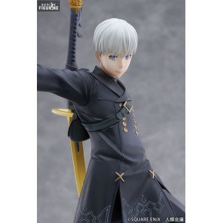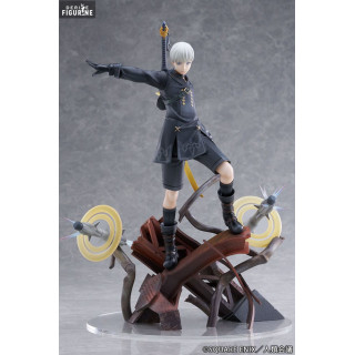 La figurine de YoRHa No. 9 Type S capture parfaitement l'essence de ce personnage emblématique de "NieR: Automata". 9S est représenté dans une pose dynamique, prêt à lancer une attaque tout en se tenant sur une base élaborée qui évoque le monde post-apocalyptique du jeu. Sa posture confiante et son expression déterminée reflètent son rôle crucial en tant qu'unité de reconnaissance dans la lutte contre les formes de vie mécaniques.