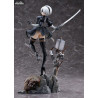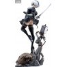 Cette figurine présente 2B dans une pose dynamique, prête à dégainer son épée pour un coup mortel. La fluidité de sa robe en mouvement et la précision des plis de ses vêtements ajoutent un réalisme saisissant à cette pièce. Le socle détaillé, représentant un terrain rocailleux avec des éléments mécaniques brisés, renforce l'ambiance dystopique de "NieR: Automata" et crée un cadre parfait pour exposer 2B.