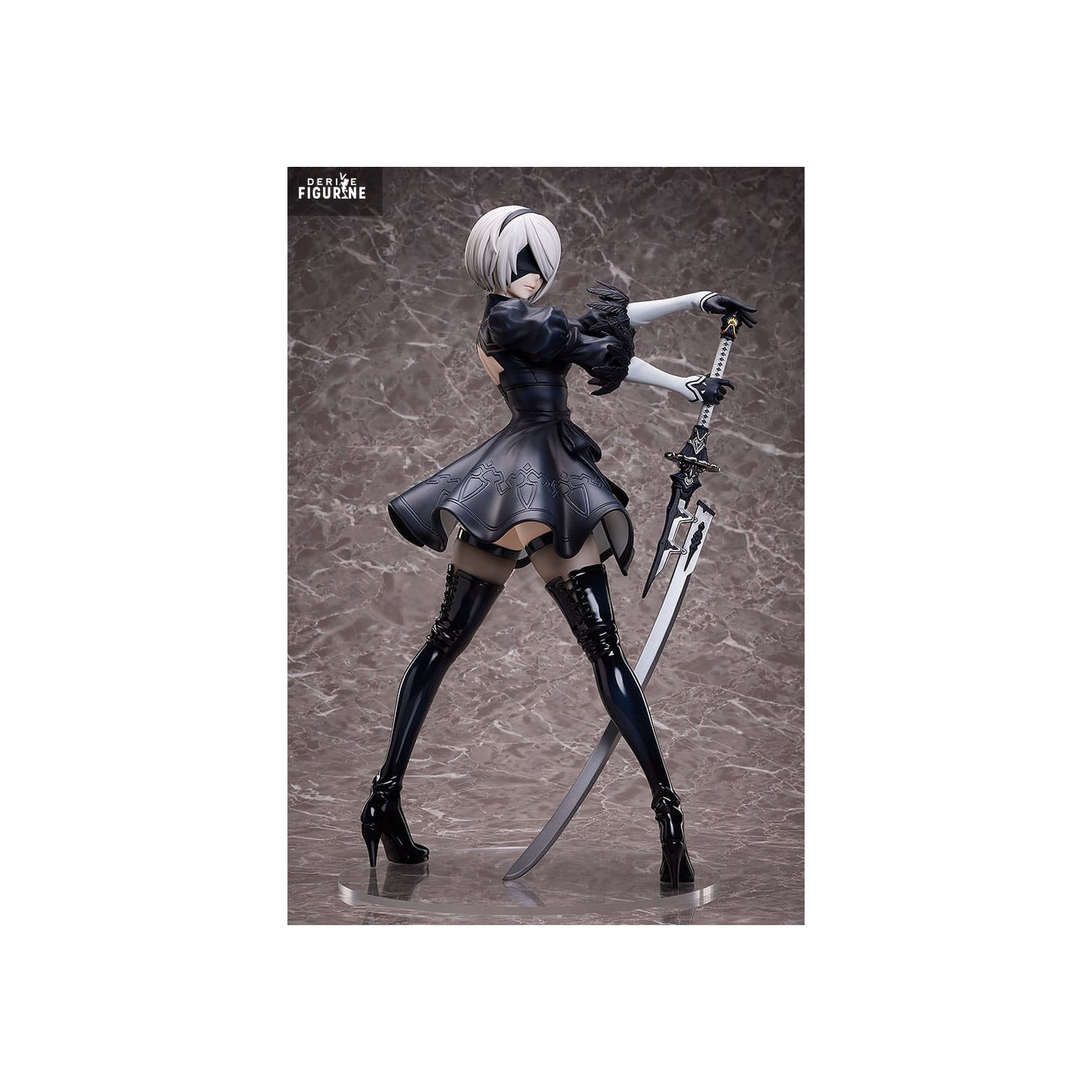 Figurine officielle de 2B (YoRHa No.2 Type B) en PVC mesurant environ 45 centimètres de haut, à l'échelle 1/4. Elle est issue de la collection B-Style. Le fabricant est FREEing.