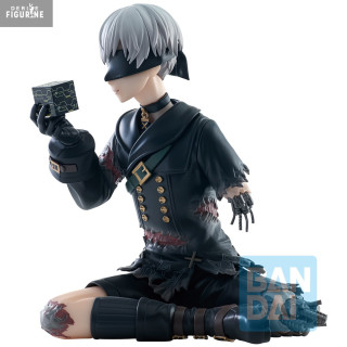 Découvrez YoRHa No. 9 Type S, alias 9S, incarné dans sa version “For the Glory of Mankind” issue de la collection Ichibansho. Jeune androïde de reconnaissance dans NieR:Automata, 9S est spécialisé dans le piratage et l’acquisition de données. Son enthousiasme curieux et sa loyauté inébranlable envers ses compagnons contrastent avec le fardeau des secrets qu’il porte, faisant de lui un personnage à la fois attachant et tragique.