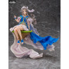 Cette figurine à l’échelle 1/7, mesurant environ 27 centimètres, capture Belldandy dans une pose élégante et apaisante, assise sur un socle en forme de roche flottante. Son visage délicat exprime douceur et sérénité, reflétant parfaitement sa personnalité angélique. Les détails de sa tenue, ornée de motifs complexes bleus et dorés, mettent en valeur son statut divin, tandis que sa longue chevelure argentée, légèrement ondulée, semble flotter au gré du vent.