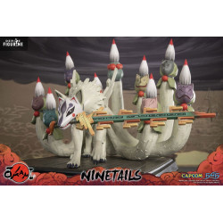 Mesurant environ 51 cm de haut, 61 cm de large et 57 cm de profondeur, cette statue en résine est une pièce majeure de collection. Elle s’adresse aux amateurs d’art vidéoludique, de folklore japonais et aux passionnés de Ōkami à la recherche d’une représentation fidèle et impressionnante de Ninetails.