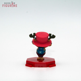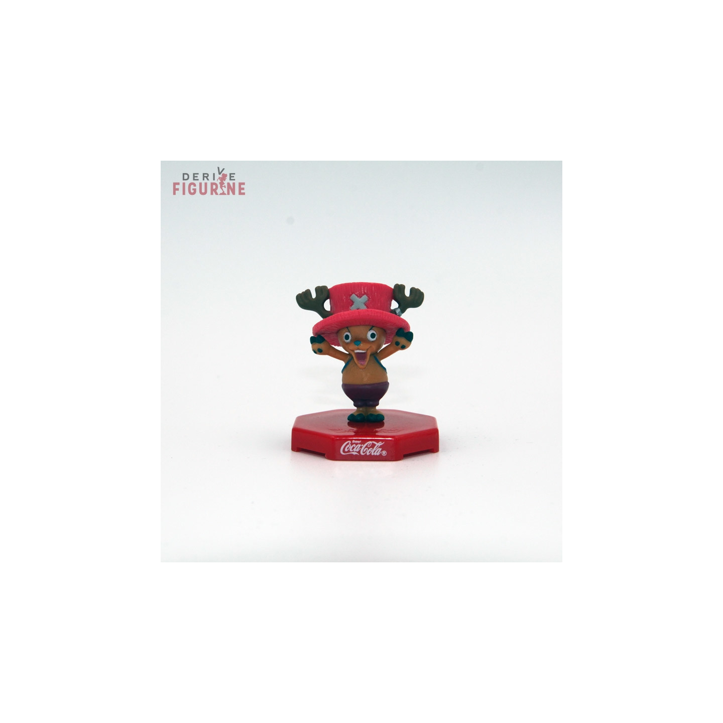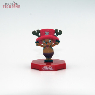 Gashapon d'occasion et officiel Coca-Cola de Tony-Tony Chopper en PVC qui mesure environ 3,5 centimètres de haut. Chopper a les bras en l'air, la bouche ouverte et les yeux écarquillés. Son expression est un mélange entre la surprise et la colère. Il s'agit d'un objet d'occasion en parfait état. Le fabricant est Bandai, vendu sans boîte.