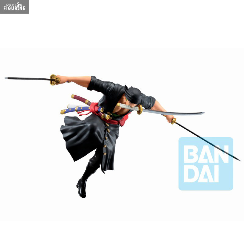 Figurine officielle de Zoro Roronoa in PVC mesurant environ 13 centimètres de haut. Elle est issue de la collection Ichibansho. Le fabricant est Bandai.