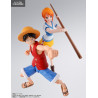 Figurine officielle de Monkey D. Luffy (Romance Dawn) en PVC mesurant environ 15 centimètres de haut. Elle est issue de la collection S.H Figuarts. Le fabricant est Bandai.