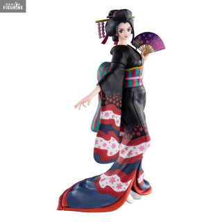 La figurine est fabriquée en PVC & ABS, garantissant une qualité et une durabilité exceptionnelles. Elle fait partie d’une série de figurines qui, une fois assemblées, forment un diorama impressionnant de l’équipage au complet dans le style traditionnel japonais de Wa no Kuni. Nico Robin, ou Orobi comme elle est connue dans cet arc, est vêtue d’un kimono magnifiquement détaillé, reflétant la richesse culturelle de l’univers de One Piece.