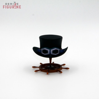 Figurine d'occasion et officielle du chapeau de Sabo en PVC d'environ 6 centimètres de haut. Le chapeau de Sabo trône fièrement sur son socle en forme de barre. Il s'agit d'un objet d'occasion en parfait état issu de la collection H.A.T Drink Cap. Le fabricant est Sentinel, vendu avec boîte en assez bon état.