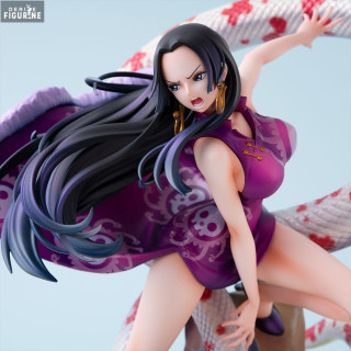Figurine officielle de Boa Hancock, Pirate Empress en PVC mesurant environ 27 centimètres de haut. Elle est issue de la collection P.O.P. A-Maximum (Portrait of Pirates). Le fabricant est Megahouse.
