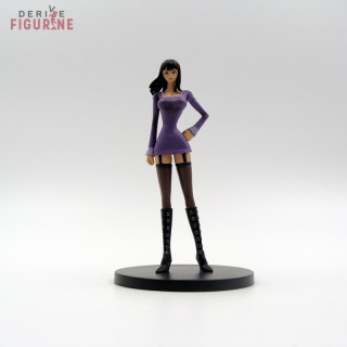 Figurine d'occasion et officielle de Nico Robin en PVC d'environ 11 centimètres de haut. Nico est très sexy dans sa tenue violette. Il s'agit d'un objet d'occasion en parfait état issu de la collection 10th Anniversary. Le fabricant est Banpresto, vendu avec boîte en assez bon état, mais un peu abîmée dessous.