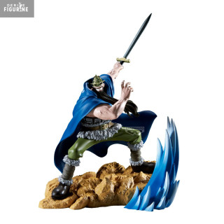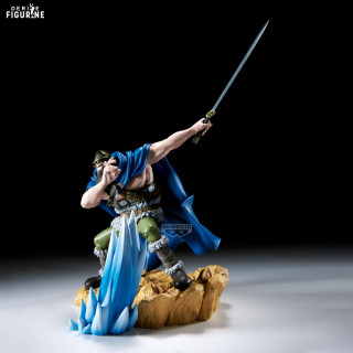 Conçue en PVC, cette pièce de 20 cm de haut séduit par ses finitions précises : le socle rocheux texturé et l’effet vague bleue translucide restituent l’énergie du combat, les plis de la cape et de la ceinture sont finement sculptés, et la peinture matte met en relief les contrastes du costume.