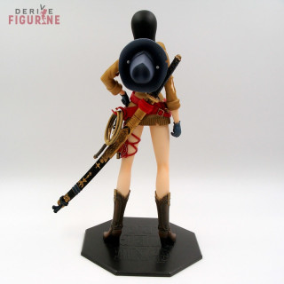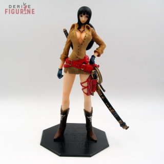 La belle Nico Robin de One Piece ne porte plus ses vêtements habituels avec cette figurine. Effectivement, elle est dotée d'un style Western qui est en fait tiré d'une illustration du chapitre 457 du manga One Piece.