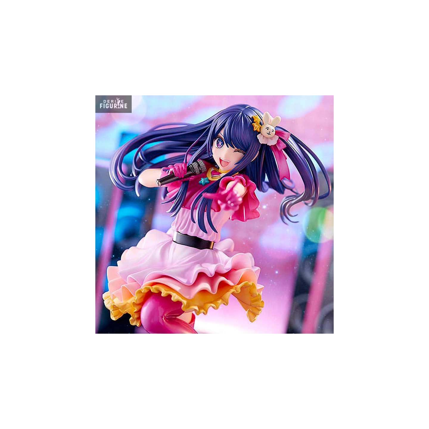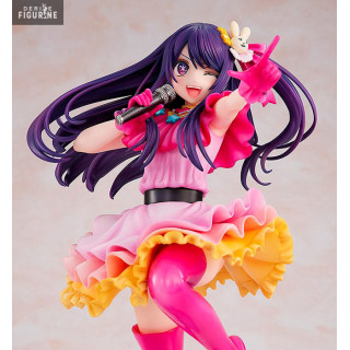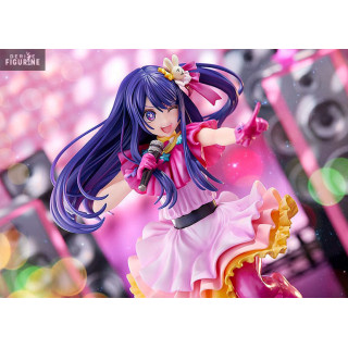 Oshi no Ko met en scène l'idole Ai qui a dû faire face à toutes les difficultés que l'on peut trouver dans les carrière d'idoles et le showbiz japonais. Une histoire difficile mais cette figurine nous montre Ai sous son meilleur profil, avec le micro dans ses mains pour une prestation de qualité sur scène ! Une très jolie figurine !