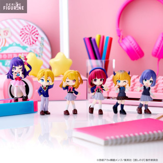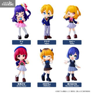 Ce pack comprend six personnages captivants : Ai, Ruby, Aqua, Arima Kana, MEMCho et Kurokawa Akane. Chacune de ces figurines est soigneusement conçue pour capturer la personnalité et le charme de son homologue original, mais dans un style chibi irrésistible.