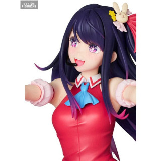 Cette figurine de Ai est conçue avec une grande attention aux détails pour refléter son apparence et son style uniques. Vêtue de sa tenue d'idole iconique, composée d'une jupe rose et d'un haut rouge vif, elle est représentée dans une pose dynamique, capturant son esprit enjoué et son charme irrésistible. Ses longs cheveux violets sont soigneusement sculptés pour montrer leur mouvement naturel, ajoutant une dimension de réalisme à la figurine.