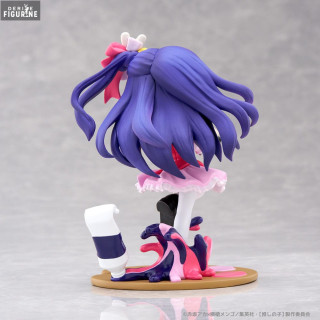 "Oshi no Ko" plonge les spectateurs dans le monde impitoyable de l'industrie du divertissement, où l'image et les apparences sont souvent trompeuses. Ai, avec ses yeux en forme d'étoile et son expression toujours joyeuse, symbolise à la fois le glamour et la pression de ce monde. Cette figurine capture à merveille l'énergie dynamique d'Ai, avec ses cheveux violets flamboyants et son costume coloré, tout en tenant un micro qui représente sa passion pour la musique. Le socle artistique ajoute une touche supplémentaire, mettant en avant son caractère enjoué et sa présence scénique.
