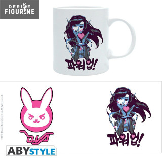 Vous adorez la jolie D.Va et son méca ? Voici un mug à son effigie sur lequel elle semble heureuse de paraître puisqu'elle vous offre un cœur. Au dos se trouve son logo en forme de lapin.