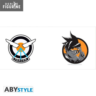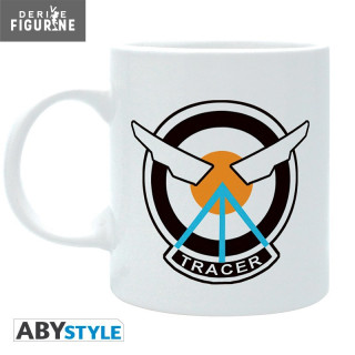 Lena Oxton, plus connue sous le pseudonyme de Tracer est le personnage représenté sur ce mug. Elle se bat avec deux pistolets qui ont une cadence de tir rapide. Elle peut aussi faire de micro-téléportations.