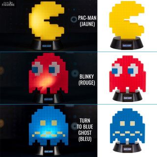 Lampe officielle au choix entre Pac-Man (Jaune), Blinky (Rouge) ou Turn To Blue Ghost (Bleu) mesurant environ 10 centimètres. Elle fonctionne avec 2 piles AAA (non incluses). Le fabricant est Paladone.
