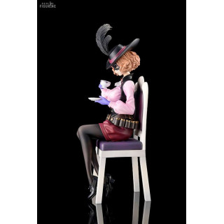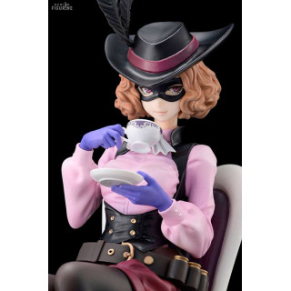 Malgré son masque et son chapeau sur la tête, sa chevelure frisée la trahie et nous laisse deviner qu'il s'agit de Haru Okumura. Elle étudie à l'académie Shujin, mais lorsqu'elle porte cette tenue, la jeune fille naïve laisse place à Noir, l'un des membres des voleurs fantômes. Elle prend le temps de boire une tasse de thé, son arme appuyée sur la table, et sachez que si vous le souhaitez, vous pouvez lui retirer son masque et son chapeau.