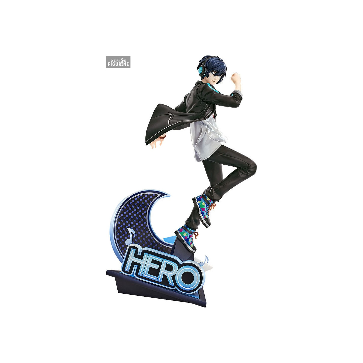 La figurine le présente en pleine action, bondissant en avant avec légèreté. Il porte un ensemble moderne composé d’un pantalon noir près du corps, d’une veste à capuche légèrement flottante et d’un t-shirt blanc fluide. Son casque audio bleu turquoise ajoute une touche dynamique, tout comme ses baskets montantes colorées à motifs pop. Le socle, en forme de croissant de lune orné d’un damier et de l’inscription "HERO", accentue son rôle central dans l’histoire tout en ancrant la scène dans l’ambiance musicale du jeu.