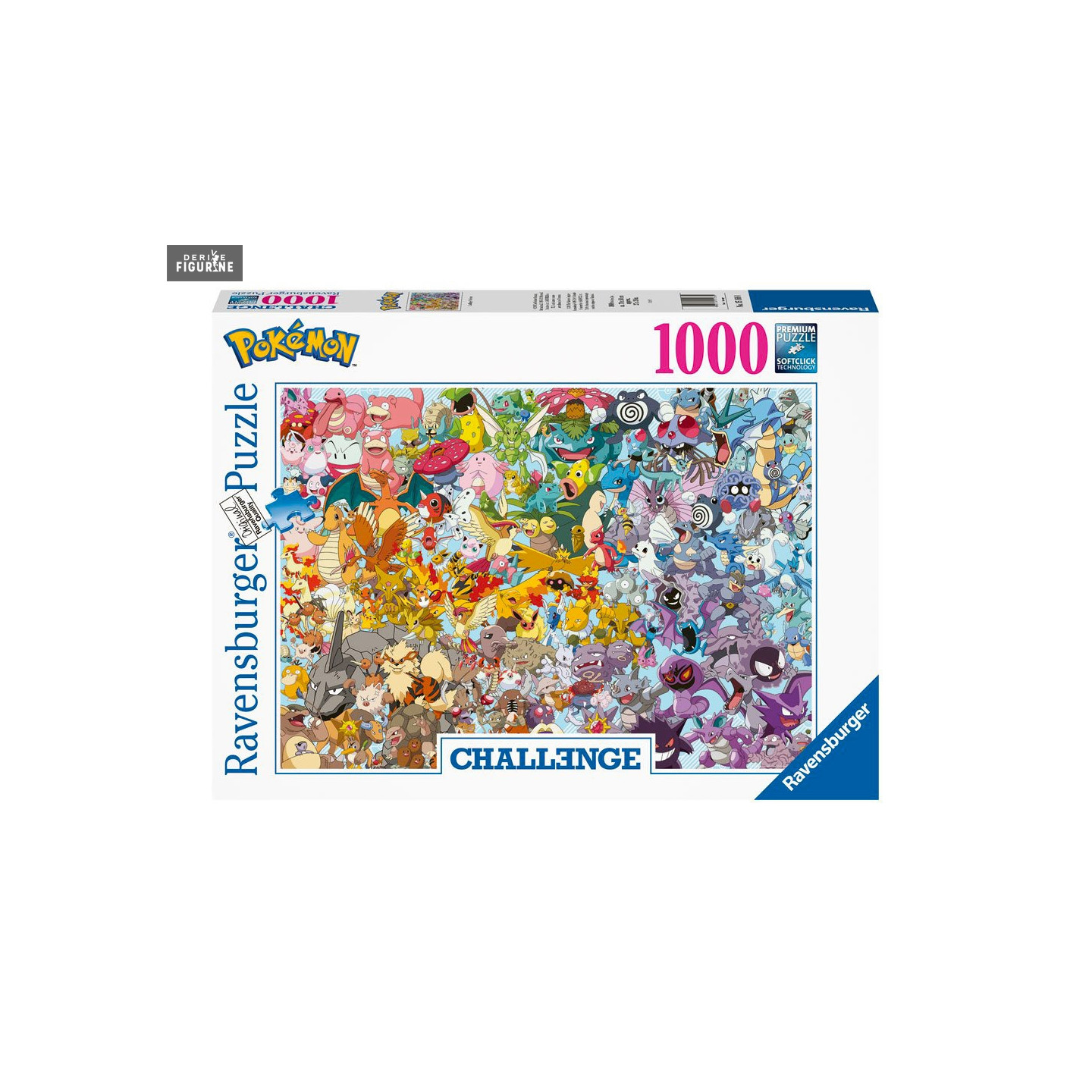 Puzzle officiel de Pokémon de 1 000 pièces mesurant environ 50 x 70 centimètres. Le fabricant est Ravensburger.