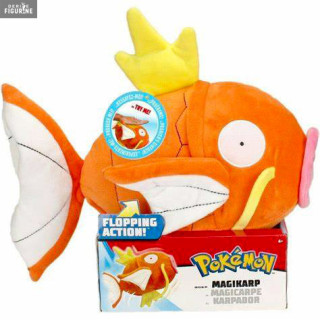 Peluche officielle de Magicarpe intéractif en 100% polyester mesurant environ 25 centimètres. Le fabricant est BOTI. Piles Incluses.