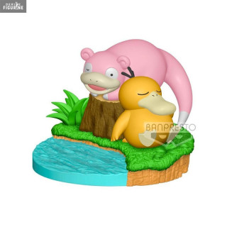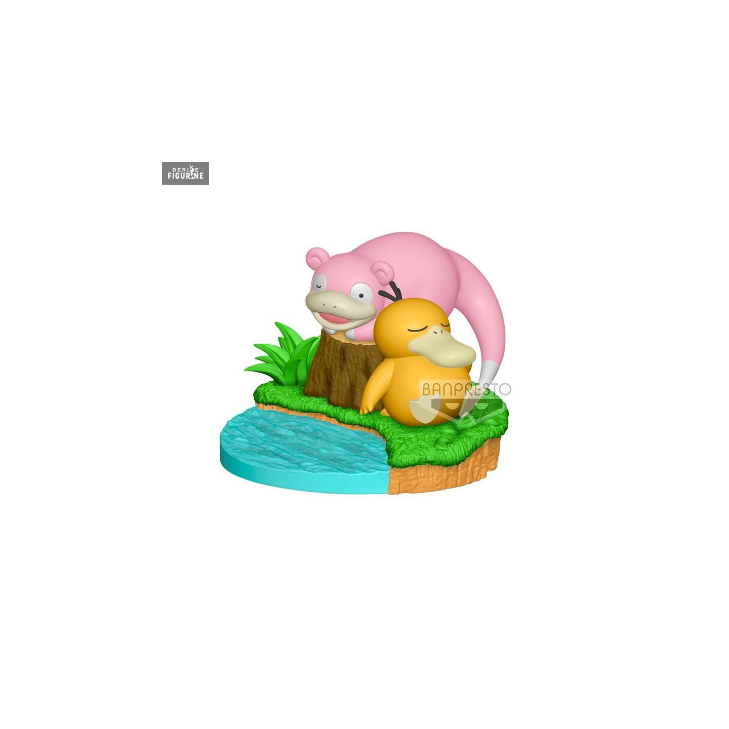 Figurine officielle de Psykokwak et Ramoloss en PVC mesurant environ 11 x 12 centimètres. Le fabricant est Banpresto.