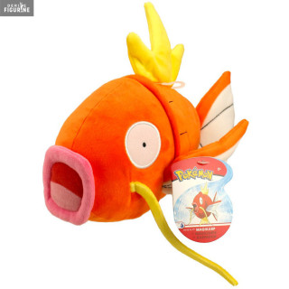 Peluche officielle de Magicarpe mesurant environ 20 centimètres de haut. Le fabricant est BOTI.