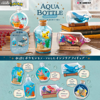 Cette collection de figurines Pokémon baptisée Aqua Bottle vous propose de retrouver vos monstres préférés dans des réalisations où ils sont dans des bouteilles tels des bouteilles perdues à la mer. Vous aurez ici la chance d'obtenir aléatoirement l'un des six modèles suivants : Pikachu et Manaphy, Corayon et Ecayon, Wailord, Aquali, Milotic, Barpau et Amonita.