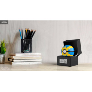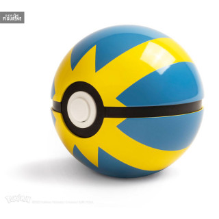 Il existe de nombreuses Ball dans l'univers de Pokémon pour capture tous les Pokémon et voici ici une réplique échelle 1/1 de la Rapide Ball que l'on reconnaît grâce à son style unique avec des couleurs bleues et jaunes se mariant à ravir. Cette Ball a fait son entrée avec les opus Perle et Diamant et a su conquérir le cœur des fans. Elle propose un bonus de 1 et elle est particulièrement efficace lorsqu'elle est utilisée en début de combat. Comme d'habitude, la collection propose des effets LEDs et différentes manières d'exposition pour votre Ball.