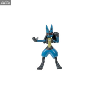 Figurine officielle de Riolu & Lucario mesurant environ 5 et 7 centimètres de haut. Le fabricant est Jazwares.