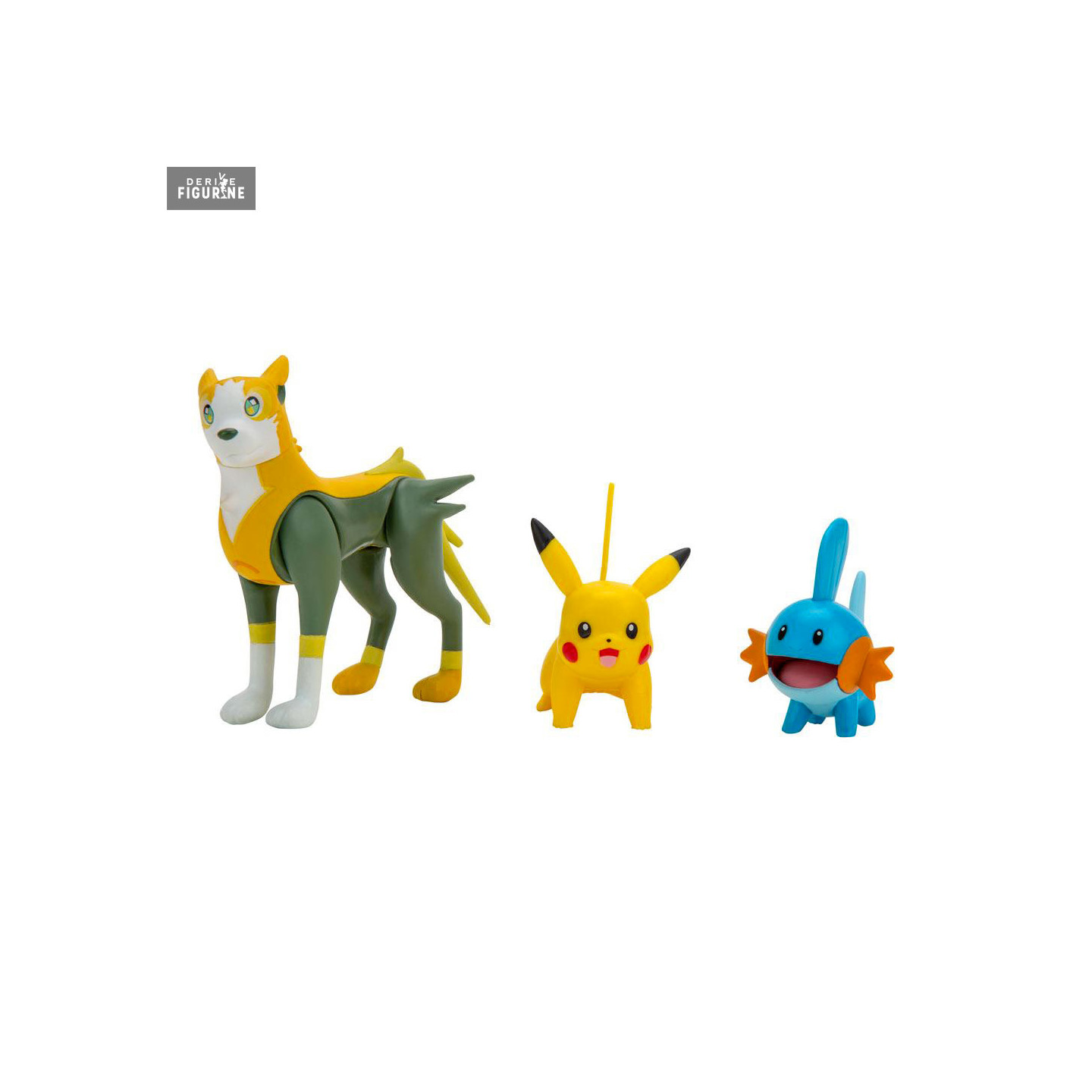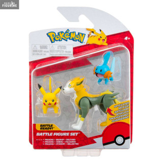 Pokémon s'offre un pack composé de trois figurines différentes à savoir Gobou qui est l'un des Pokémon de départ de la région de Hoenn, le célèbre Pikachu dans sa version numéro 1 et Fulgudog, un pokémon chient de la 8ème génération. Le tout pour la collection Battle !